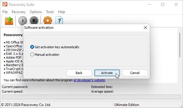 Step 4. In case, for some reasons, you have chosen manual activation enter the activation key and press Activate.
